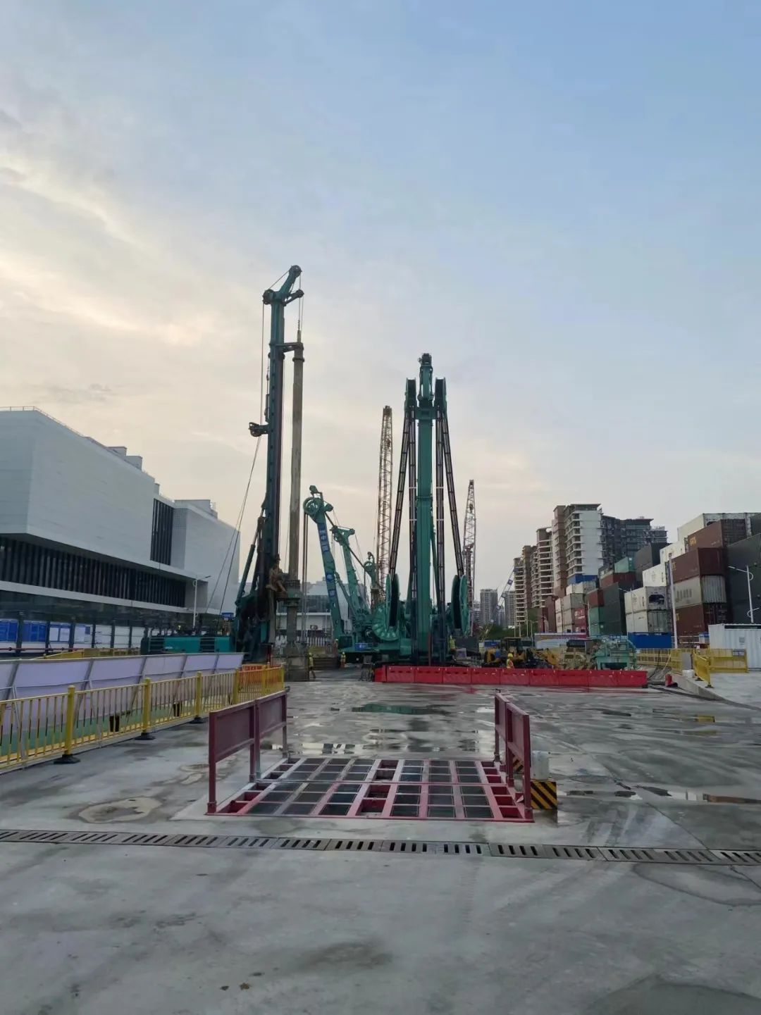 在深圳市城市軌道交通15號(hào)線的重要節(jié)點(diǎn)——鏟灣北站,其圍護(hù)結(jié)構(gòu)的施工已經(jīng)步入了尾聲階段。現(xiàn)場(chǎng)呈現(xiàn)出一派繁忙而有序的景象,多臺(tái)金泰雙輪銑、抓斗等大型設(shè)備轟鳴作響,共同繪制出一幅風(fēng)風(fēng)火火、緊張有序的施工畫卷。